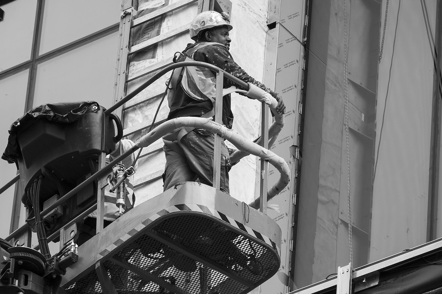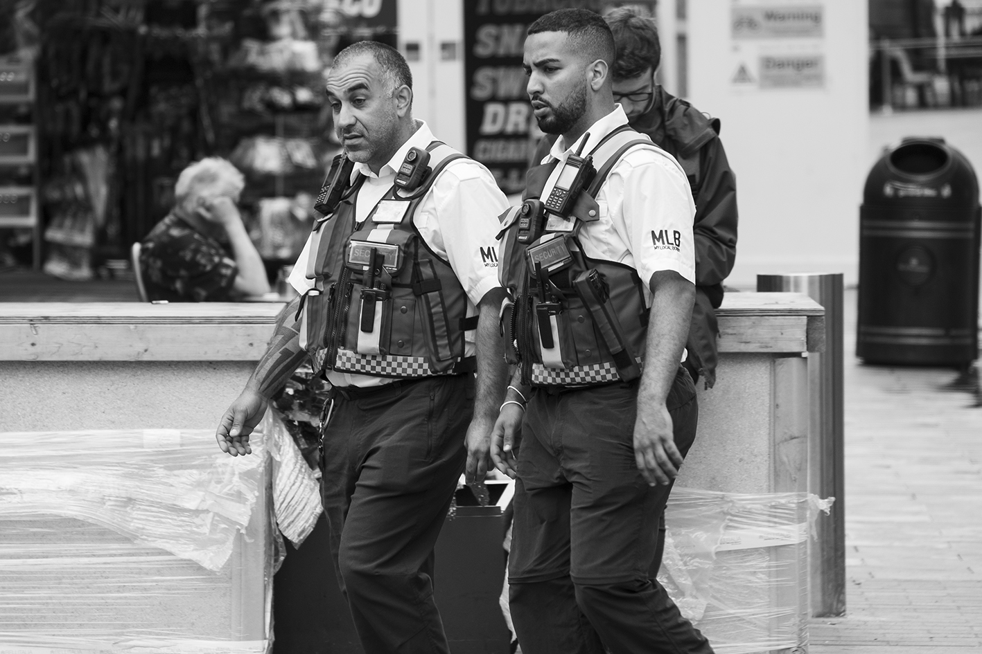 "Business as Usual" portrays the appearance of central London during the pandemic. The photographs were taken in some of the city's most important commercial areas during the periods between lockdowns. These were places without neighbours and devoid of tourists, only visited by those who had a reason to be there at the time.